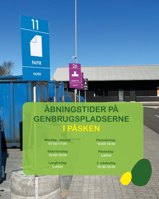 Genbrugspladserne har ændrede åbningstider i påsken, mens kontoret holder lukket på helligdage.