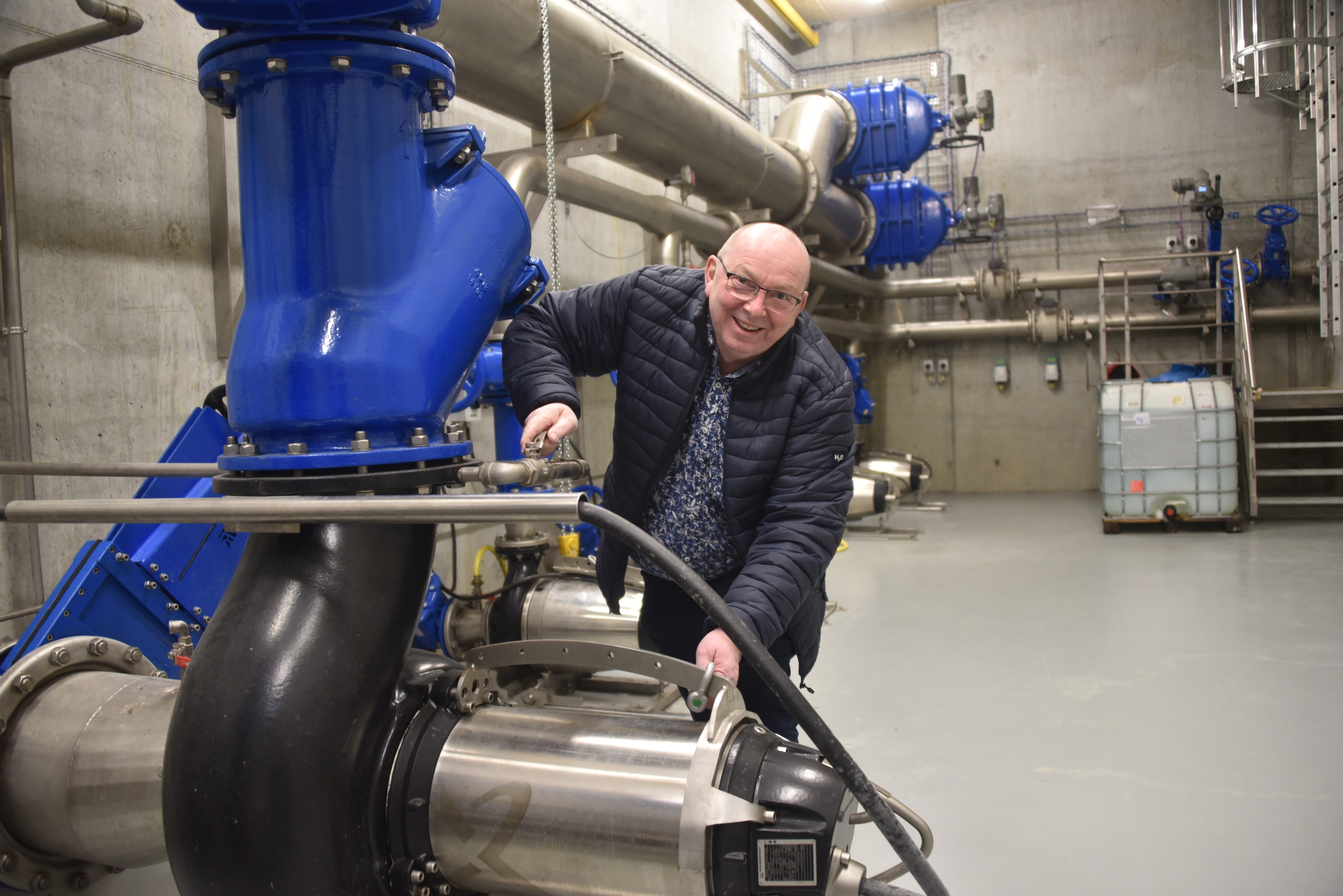 Han kommer også jævnligt på den gamle arbejdsplads i Billund for bl.a. at tilse de pumper, der løfter spildevandet op i en kæmpe buffertank, hvorfra det selv kan løbe til Grindsted.