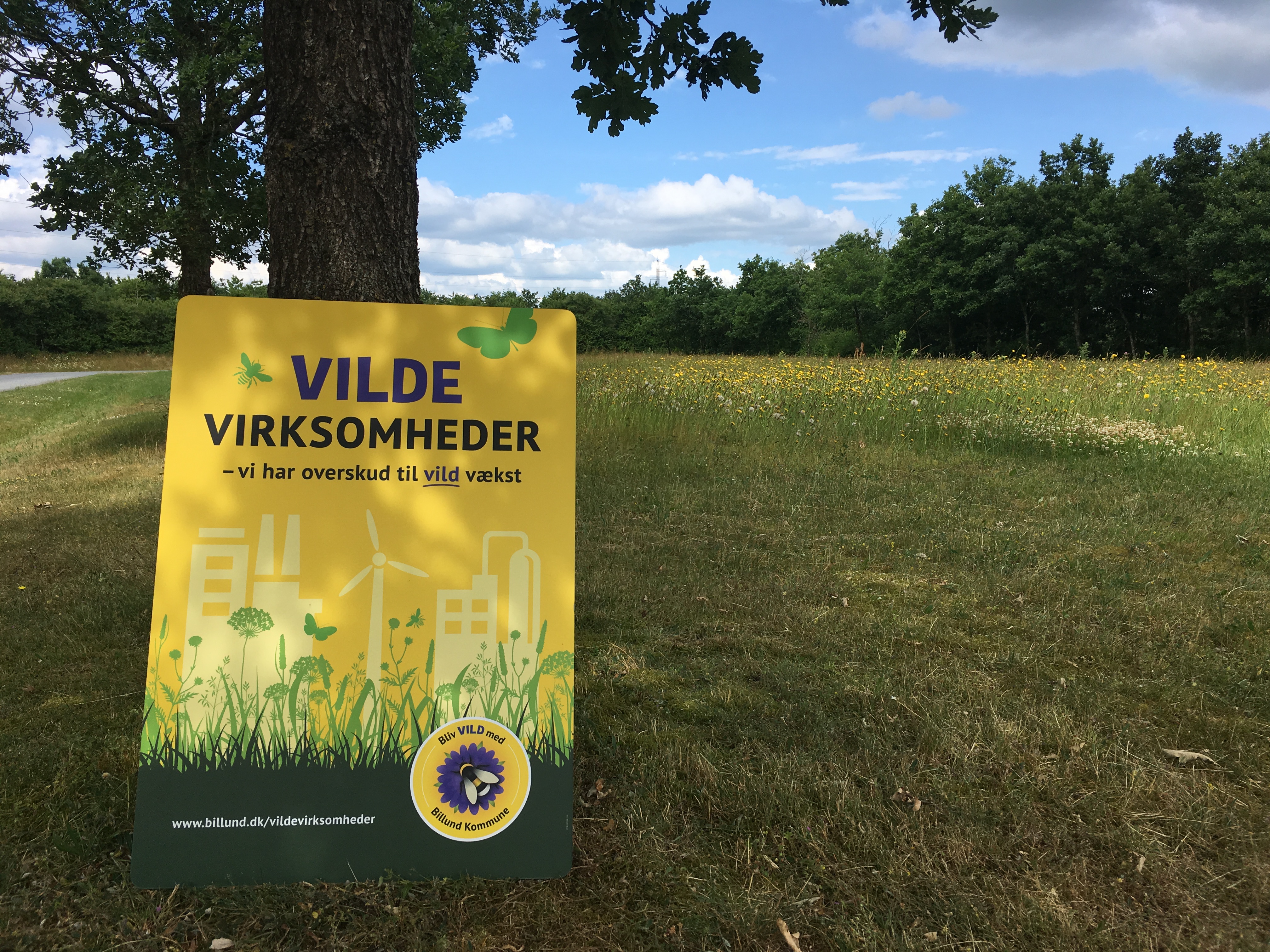 I Billund Vand & Energi har vi valgt, at lade nogle af vores grønne arealer stå uklippet og vi ser allerede nu meget mere liv på arealerne, fortæller Randi Hovgård-Nielsen, der er Kunde- og Økonomichef i Billund Vand og fortsætter: Skiltet er med til at vise, at det er noget vi aktivt har valgt, og at det ikke er sløseri, når vi ikke klipper vores grønne arealer. Vi gør det, fordi vi ønsker mere vild natur i Danmark og i Billund Kommune.